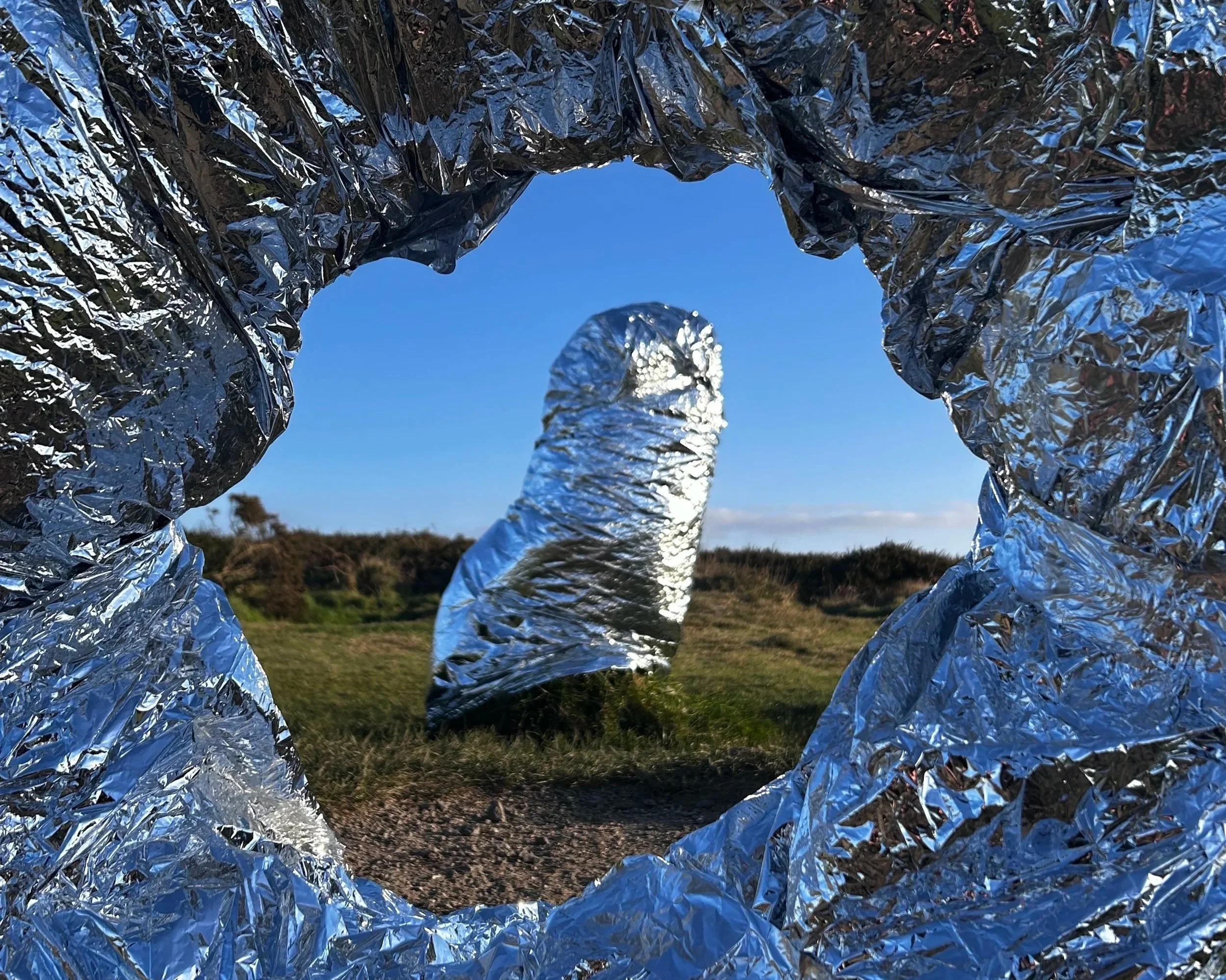 Silver mylar on Mên-an-Tol